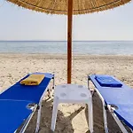 The beachfront villa is nestled in a beach area of Agios Nikolaos, just near the Salonikiou Beach.